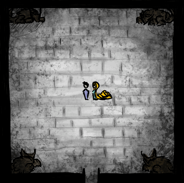 The prince must stay in the center of the room and hold Rapunzel’s hair, gradually releasing it. Then, Rapunzel must walk in circles around the prince, until she gets to the walls and finds the escape door.