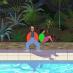 skyscraper with four triangle-topped roofs; - a road that branches into five paths.
