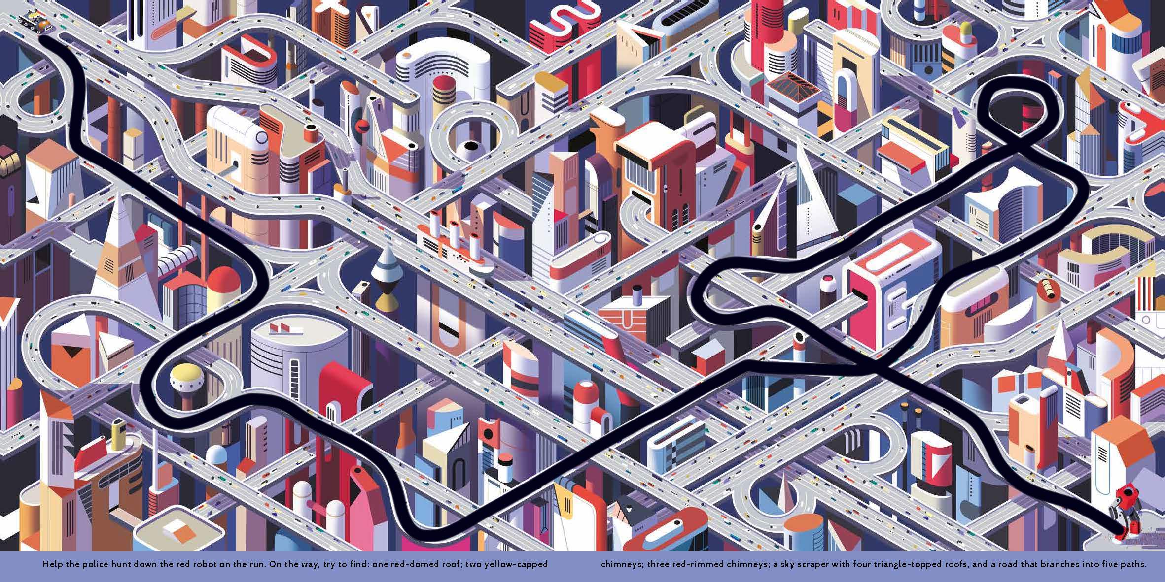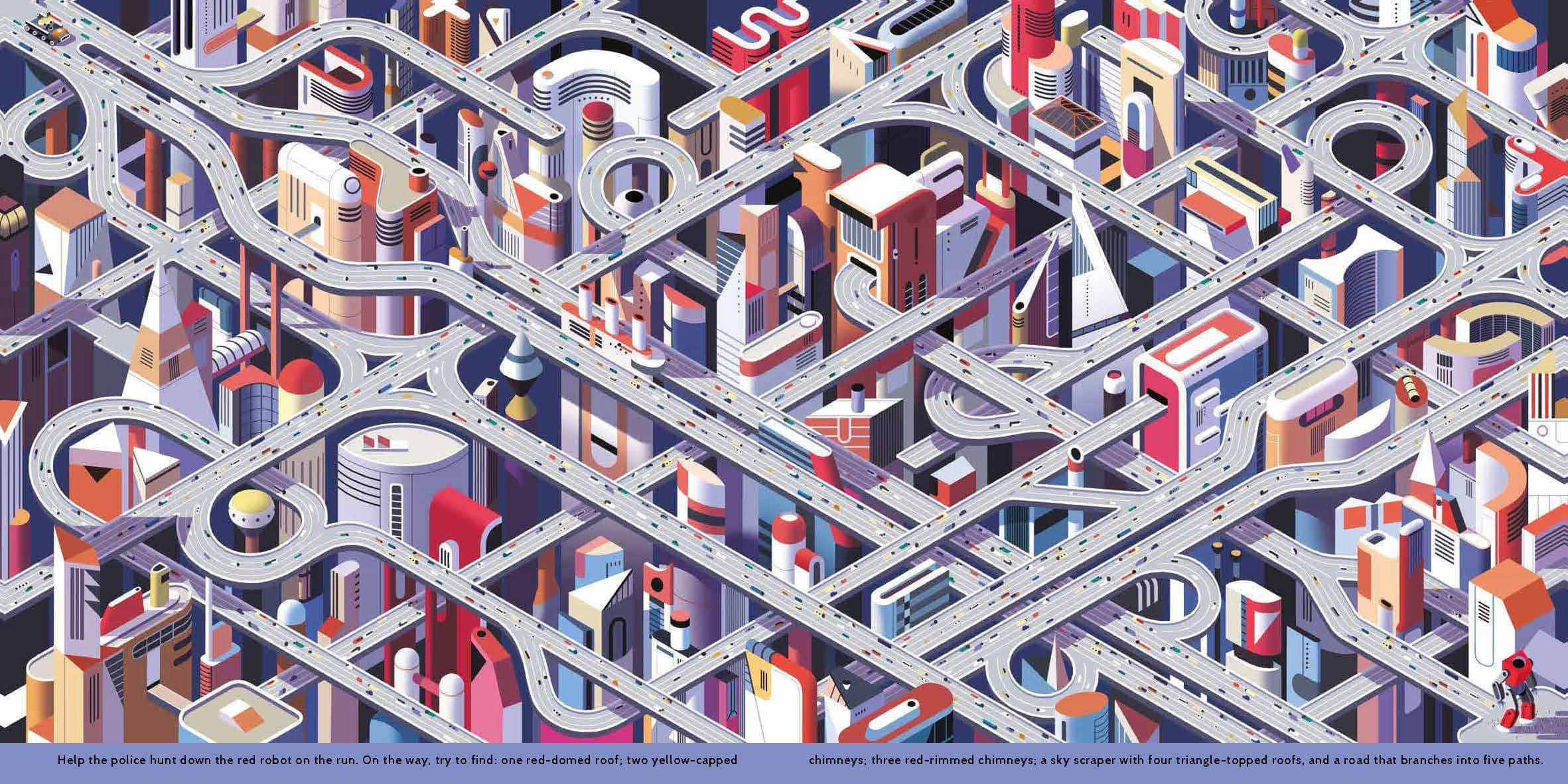 Help the police hunt down the red robot on the run. On the way, try to find: