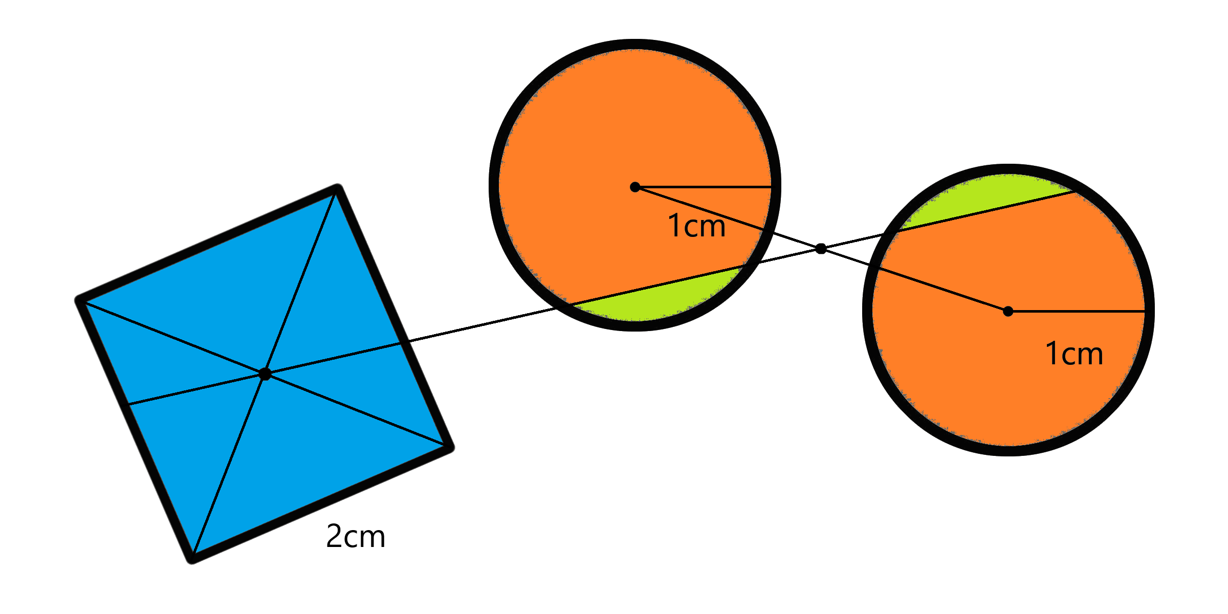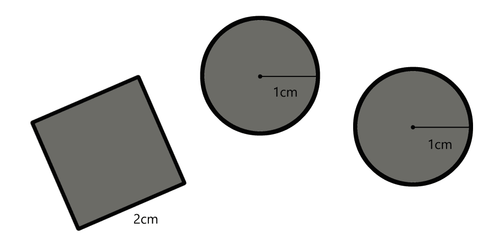 You have 1 square with side length 1 and 2 circles with diameter length 1. Draw a single line so that the resulting areas on the left and on the right of the line are equal.