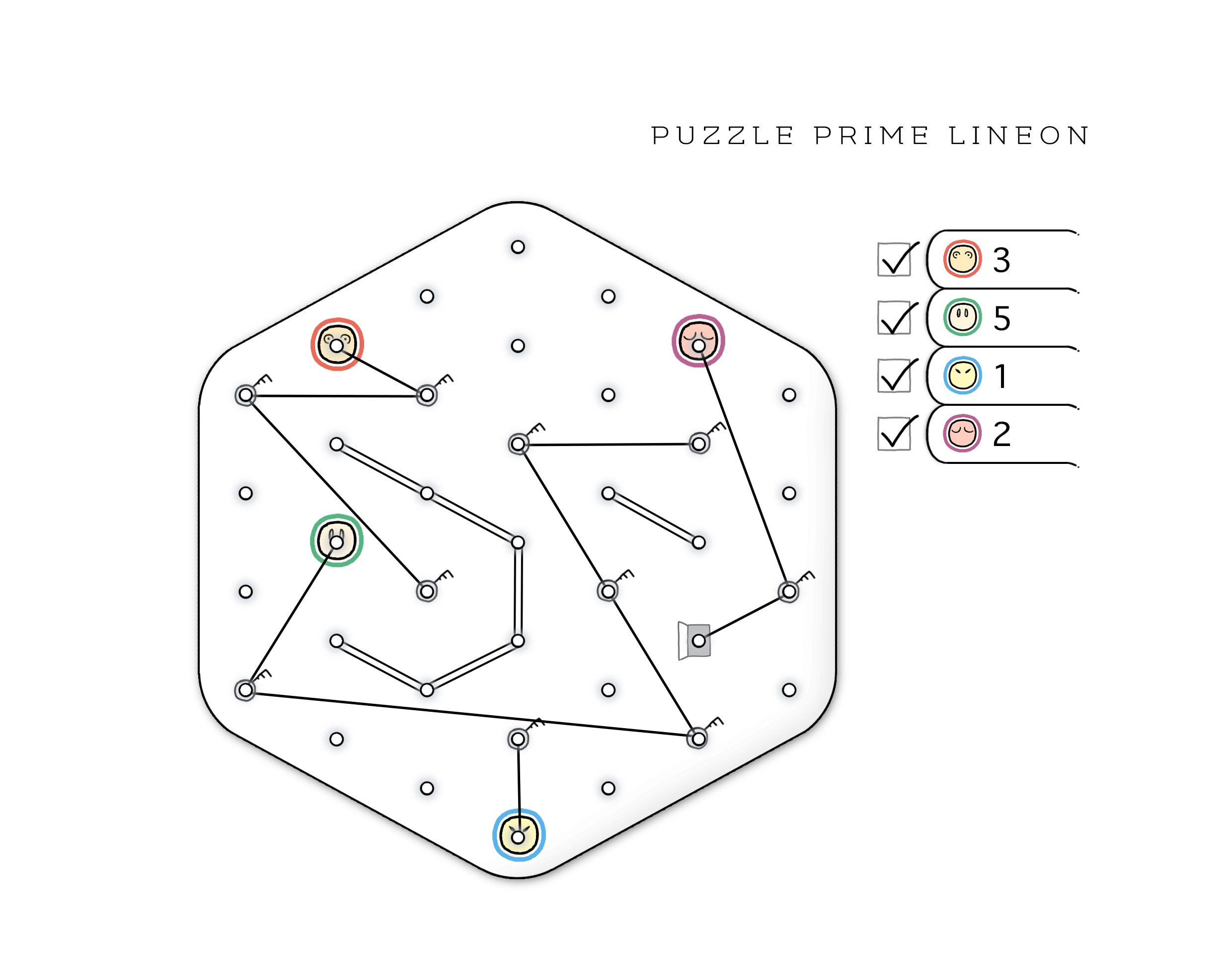 PLAYING THE GAME: Draw lines to move Friends. A move is connecting a point on the Grid to another point on the Grid by drawing a straight line. The line can be made in any direction, as long as it connects exactly two points and doesn’t cross or touch another line.