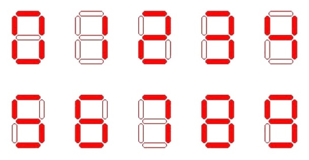 Notes: For example, the number 273914 would use 5+3+5+6+2+4=25 segments.