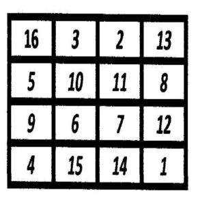 This magic square makes its appearance, in his own engraving of 1514, “Melancholy”.
