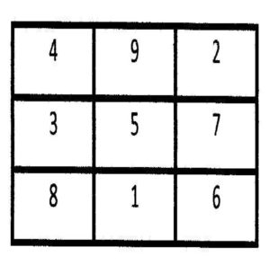 A magic square is a table of numbers that, if you add all the numbers in each row and column and in each of its two diagonals, adds up to the same sum and called magic constant. A magic square is also the below.