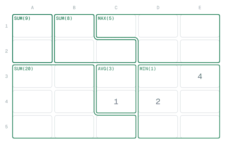 - The grid also includes regions with mathematical constraints that must be satisfied.