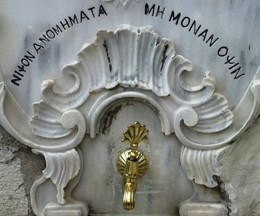This inscription was originally written on the fountain of the Hagia Sophia in Constantinople but no longer survives. It means to wash away your sins, not just your face. Today, some Greek monasteries have copied the inscription on their own fountain in their courtyard…