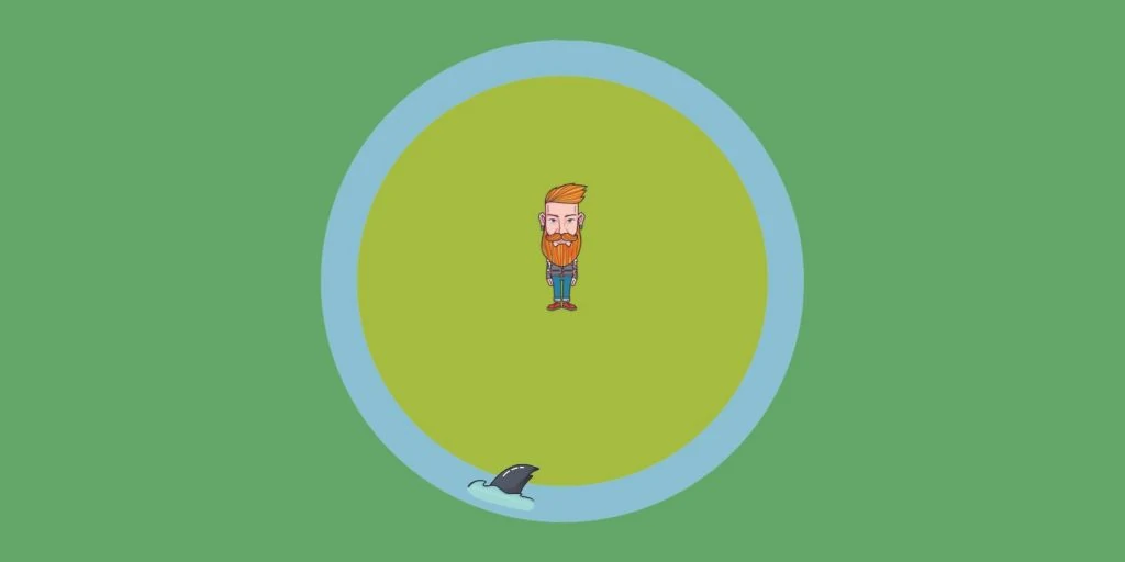 A man stands in the center of a circular field which is encompassed by a narrow ring of water. In the water there is a shark which is swimming four times as fast as the man is running. Can the man escape the field and get past the water to safety?