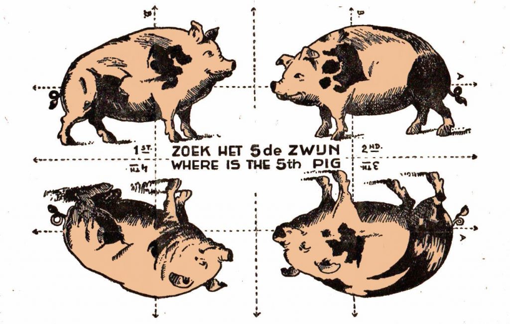 On this Dutch poster from WW2 you can see four pigs. Print the poster and try to find the fifth pig.