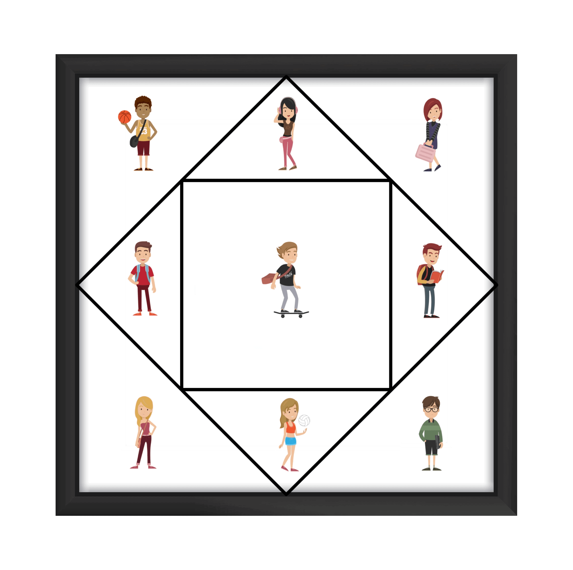 A square has dropped on the ground and broken into ten pieces. Accidentally, an additional, eleventh piece has fallen among the others. Can you figure out which one it is?